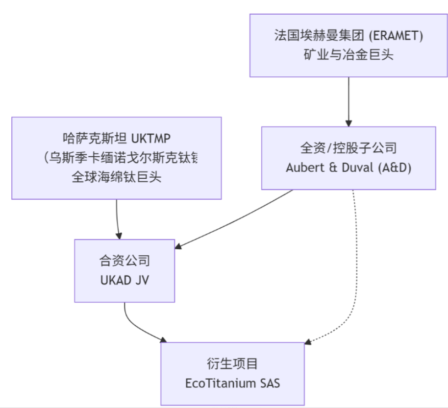Французская компания AUBERT & DUVAL, ранее являвшаяся ключевой дочерней компанией французского концерна Eramet, в апреле 2023 года прошла масштабную реструктуризацию акционерного капитала: её совместно приобрели Airbus, Safran и Tikehau Capital, причём доли участия всех трёх сторон равны; французское правительство сохранило за собой контрольный пакет акций для обеспечения своих стратегических интересов. Компания преобразовалась в одного из ключевых европейских поставщиков для таких важнейших отраслей, как аэрокосмическая промышленность и оборонная отрасль. В 2020 году UKTMP JSC подписала меморандум о сотрудничестве с индийской компанией MIDHANI с целью создания в Республике Индия совместного предприятия по производству медицинского оборудования и биологических имплантатов из титановых сплавов. С 2010 года UKTMP поставляет MIDHANI титановую губку и титановый сплав Eli для производства медицинских изделий. Компания Mishra Dhatu Nigam Limited (MIDHANI) была основана в 1973 году Исследовательской лабораторией оборонной металлургии Индии и является одним из ведущих производителей специальной стали, высокотемпературных сплавов и единственным производителем титановых сплавов в Индии. Компания производит титановые сплавы и специальную сталь для атомной энергетики, аэрокосмической, химической и нефтехимической промышленности, а также ряд биоимплантатов и протезов из титановых сплавов мирового уровня. В 2020 году АО «Усть-Каменогорский титано-магниевый завод» (UKTMP) подписало меморандум о сотрудничестве с компанией IREL Limited, направленный на строительство в Индии завода по производству титанового шлака, что позволит АО «UKTMP» увеличить долю титаносодержащего сырья и снизить производственные затраты за счет сокращения расходов на импорт сырья. India Rare Earths Limited (IREL) (ранее Indian Rare Earths Limited) — государственный стратегический горнодобывающий гигант, полностью принадлежащий правительству Индии и подчиняющийся Министерству атомной энергии (DAE). Основной продукцией компании являются тяжелые минералы, в том числе титаниты, рутин, циркон, молильбрен, кремнезем и гранаты. В 2024 году UKTMP и IREL подписали соглашение о создании индо-узбекского совместного предприятия (JVC) — IREUK Titanium Limited, которое будет перерабатывать запасы низкосортного титанита в штате Орисса (Odisha) в высокосортное титановое сырье. Это поможет UKTMP JSC обеспечить безопасность поставок титанового сырья и развивать титановую цепочку создания добавленной стоимости на территории Индии.