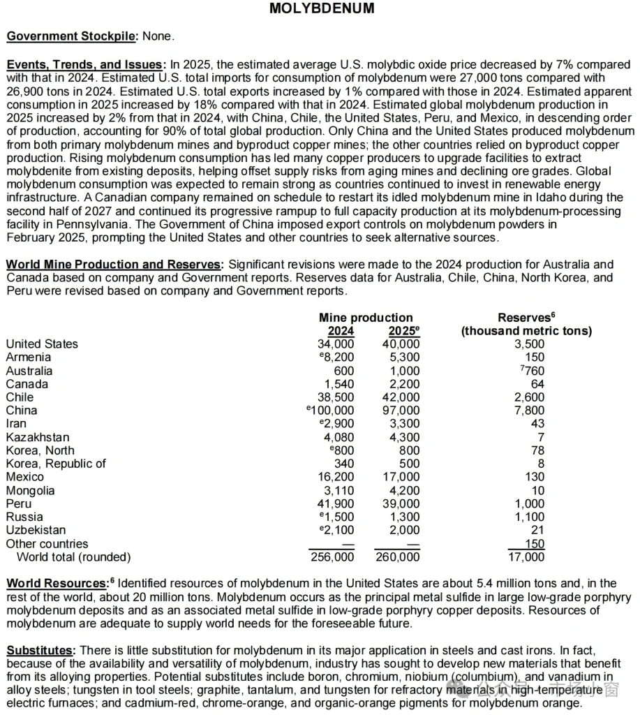 4 февраля 2025 года в Объявлении № 10 за 2025 год, опубликованном Министерством коммерции и Главным таможенным управлением Китая, молибден наряду с вольфрамом и другими металлами был включен в список товаров, подлежащих экспортному контролю. При этом молибден стремительно превращается в «стратегический металл» и становится новым центром глобальной конкуренции: хотя страны Европы и США обладают определенными запасами молибдена (в основном в качестве побочного продукта при добыче меди), они в значительной степени зависят от Китая в области технологий выделения и глубокой переработки. Публикация списка экспортного контроля означает, что после редкоземельных элементов и вольфрама Китай обрел еще один козырь, от которого зависит судьба мирового высокотехнологичного производства.