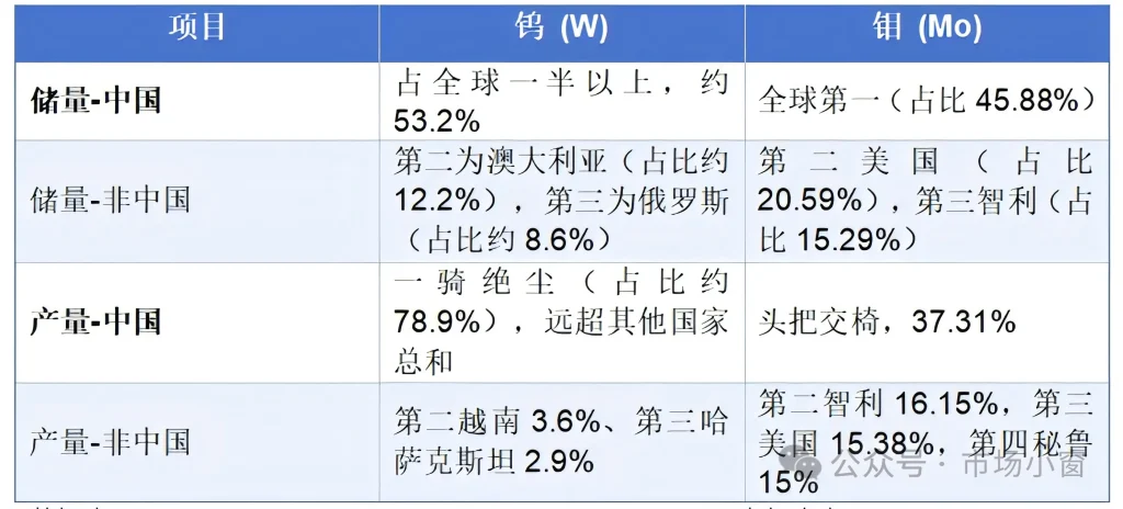Здесь я привожу сравнительную таблицу долей молибдена и вольфрама в китайском производстве, чтобы вы могли сразу увидеть разницу