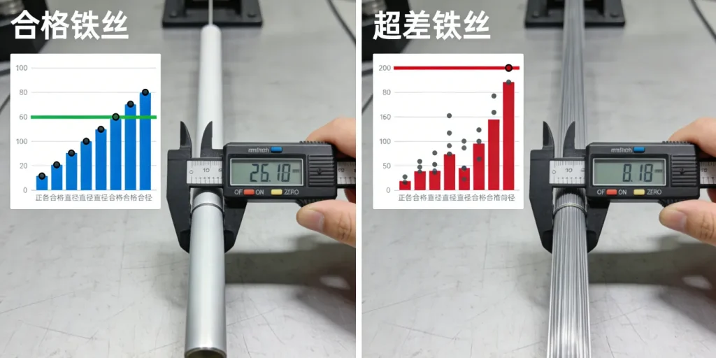 Несоответствие ключевых размеров, таких как диаметр титановой проволоки, техническим требованиям напрямую влияет на последующую сборку и эксплуатационные характеристики, поэтому это является одним из основных дефектов, которые необходимо тщательно контролировать в процессе изготовления.